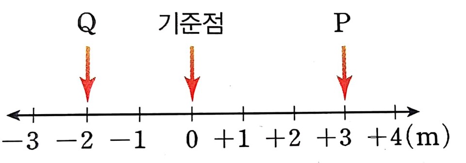 우리 'P'와 'Q'의 위치를 정의해볼까? P는 기준점으로부터 3m 떨어져 있고, 동쪽에 있네? 'Q'의 위치는 너희들이 해보련? 친절하지만 비밀스러운 답: Q는 기준점으로부터 2m 떨어져 있고, 서쪽에 있음