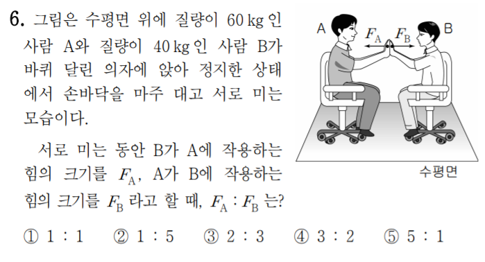 느낌이 오니? 작용과 반작용의 관계는 단지 주어와 목적어를 바꿔주면 된다는 걸? 이거 되게 중요하니까 별표 백만 개 때려 박고 외우길..('힘의 평형'이랑 비교하여 묻는 문제가 많이 나오기 때문이고, 이거 몰라서 의외로 많이 틀림)