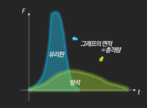그렇다면 왜 유리판이 달걀에 작용하는 충격력이 방석이 달걀에 작용하는 충격력보다 센 것일까?