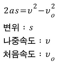 이 공식은 가속도와 속도와 이동 거리의 관계로 이루어져 있어. 이 식에 양념 좀 쳐볼게.