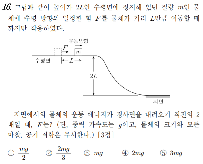 역학 문제를 맞닥뜨리면 힘으로 접근해야 할지 에너지로 접근해야 할지 선구안이 필요할 듯 (18년도 수능 물리 1 16번 같은 거)