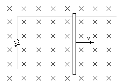 지면 아래를 향하는 균일한 자기장의 세기가 B인 공간에 ㄷ자형 도선이 놓여 있고 움직일 수 있는 도선이 오른쪽으로 가고 있는 상황이야.