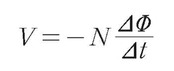 이때 변화하는 자기장에 의해서 만들어지는 전압을 '유도 기전력[V]'이라고 해. 위의 패러데이 법칙은 유도 기전력[V]의 세기가 어떤 변수에 의해서 결정되는지 알려주는 식이야.