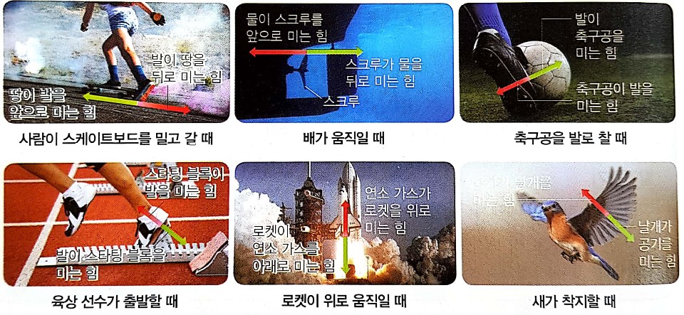 이처럼 힘은 두 물체 사이에서 상호 작용하는데, 이때 두 힘은 작용과 반작용 관계를 이룬다.