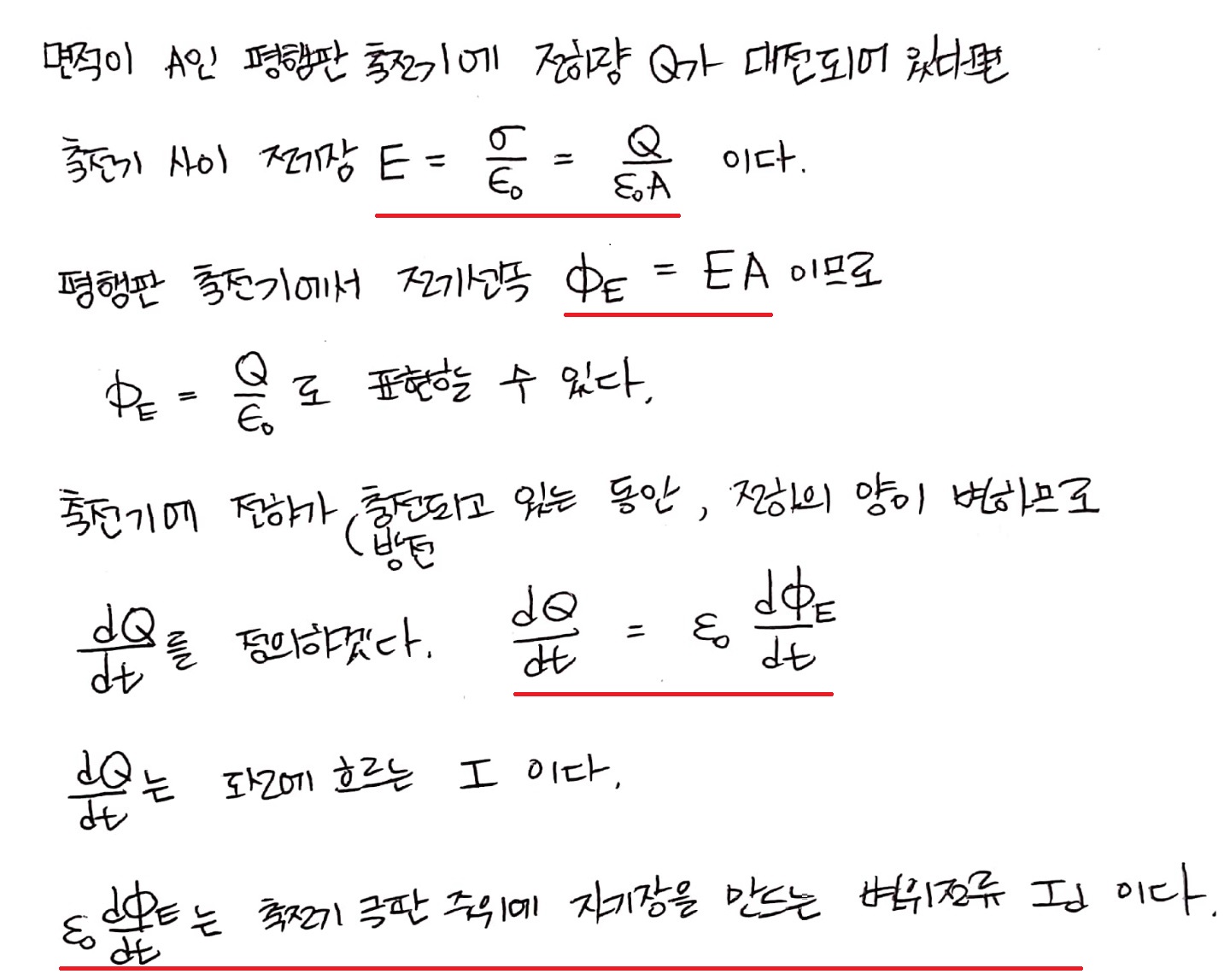 (2) 극판 사이에서 dE/dt
