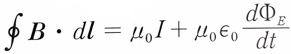 위 식은 암페어 법칙에 변위 전류 항을 추가하여 완성된 식으로 패러데이 법칙과 대칭을 이룹니다.