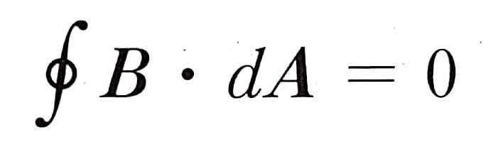 위 식은 자기장 B를 폐곡면에 대해 면적분한 값이 항상 0이라는 것을 보여줍니다. 이는 자기 홀극이 존재하지 않음을 의미합니다. 쉽게 말하면 자석의 두 극은 절대로 분리가 되지 않아요.