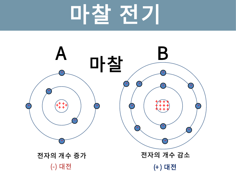 서로 다른 물체를 마찰시키면 물체 사이의 전자 이동으로 전하의 균형이 깨지게 된다.