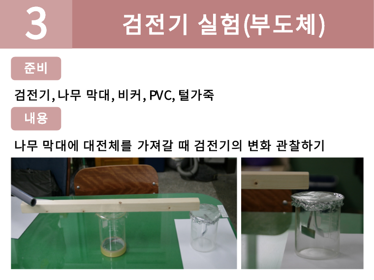 (2) (-)전기로 대전된 검전기에 대전되지 않은 금속 막대를 접촉했을 때 검전기의 금속박의 변화와 그 이유를 서술하시오.