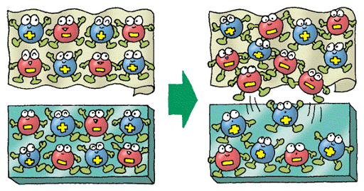 서로 다른 물체(A와 B)를 마찰시키면 마찰에 의한 열에너지로 전자들의 운동이 더욱 활발해진다. 이런 상태에서 A원자핵 전하량이 B원자핵 전하량보다 크다면 B의 전자는 A의 원자핵에게 더 강하게 이끌리기 때문에 B의 전자들이 A로 이동하게 된다.