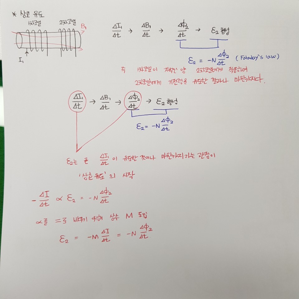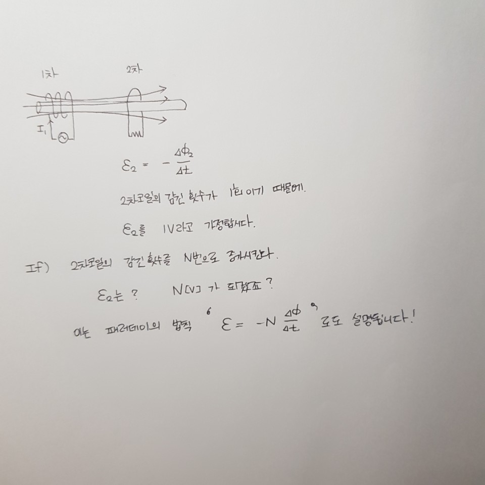 그래야만 2차 코일에 유도기전력이 형성되어 2차 코일에 전류가 흐를 수 있는 것입니다.