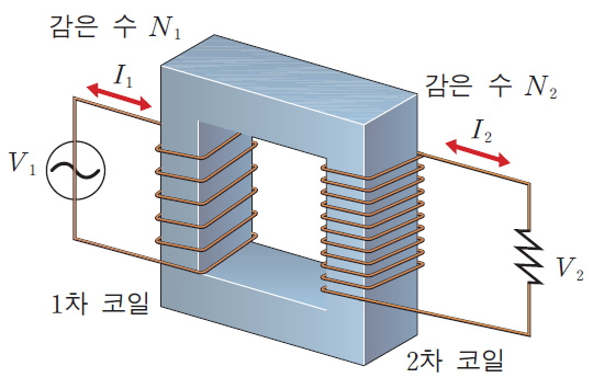 곧 변압기 각 코일의 전압과 코일의 감긴 횟수는 서로 비례합니다.