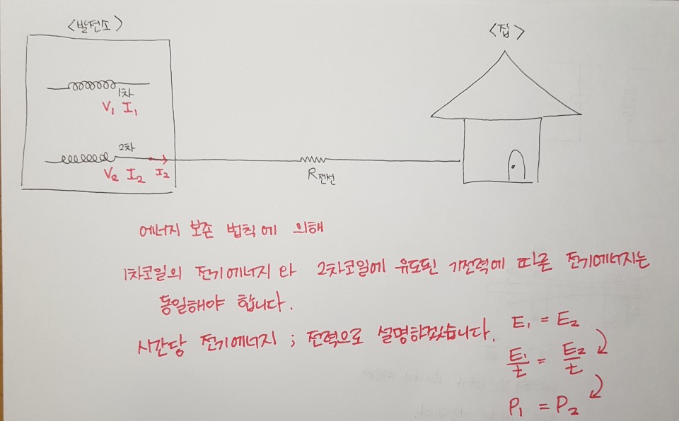 따라서 고압으로 전력을 수송하게 되면 전류값이 최소화되기 때문에 가정이나 공장이 멀리 떨어져 있어도 손실 전력을 최소화하여 수요자들이 편하게 전기에너지를 쓸 수 있는겁니다. 물론 고압으로 송전되었던 전력의 전압은 가정이나 공장에서 적정 수준의 전압의 크기로 변할수 있겠죠?(코일의 감은 수를 감소시키면 됩니다.)