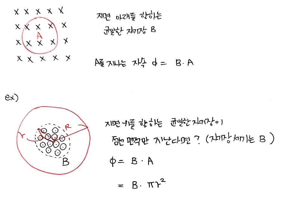 Φ=BA (B: 자기장의 세기, A: 자기장이 지나는 면적)