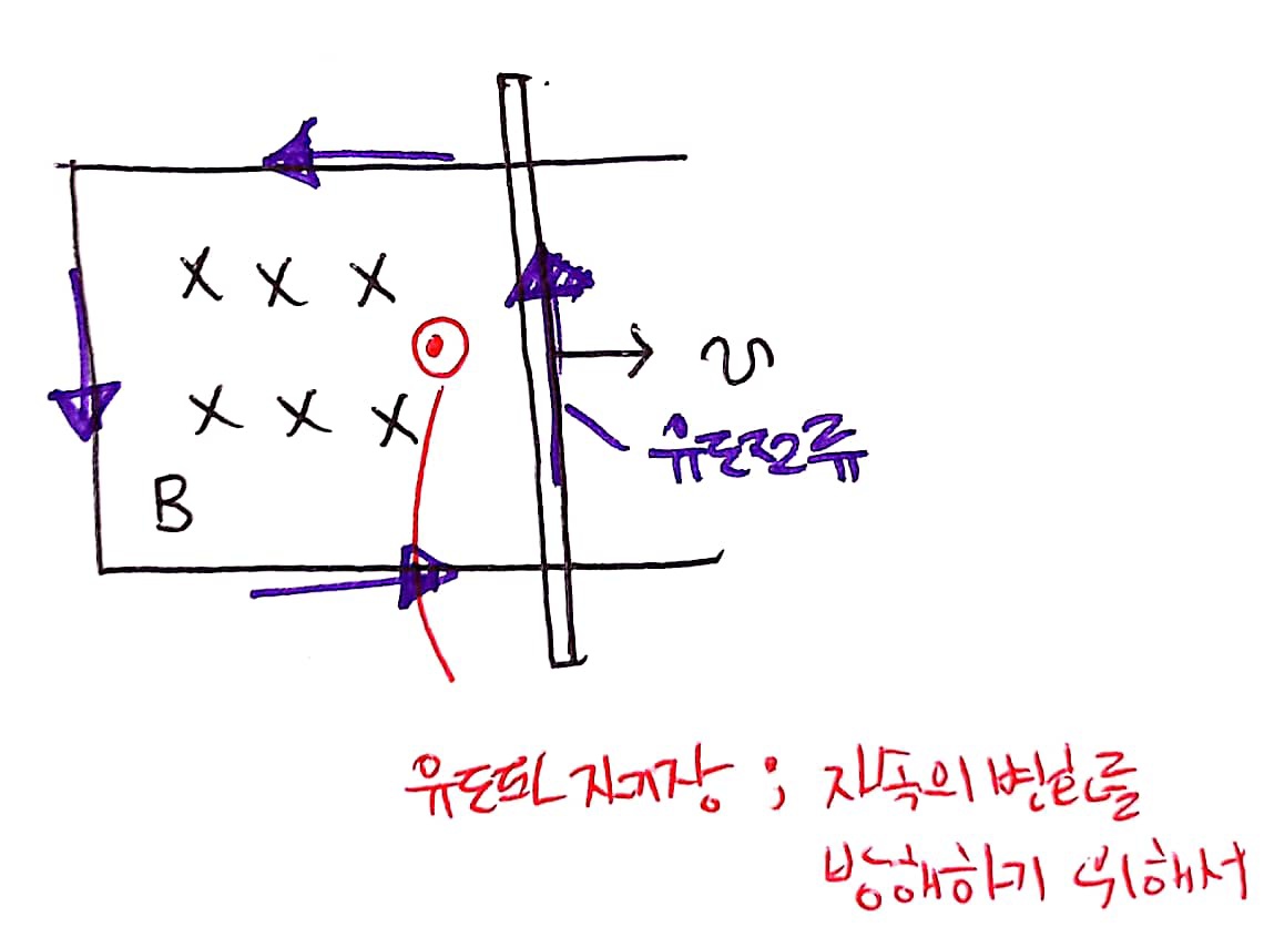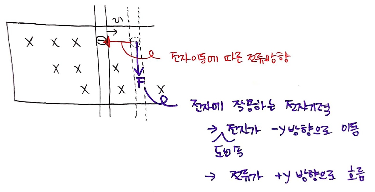다시 본론으로 돌아오자. 도선이 움직일 때 도선 내의 전자가 도선과 함께 운동함에 따라 자기장에 의한 전자기력을 받아 이동하게 됨에 따라 전류가 발생한다.