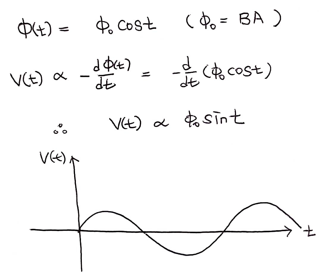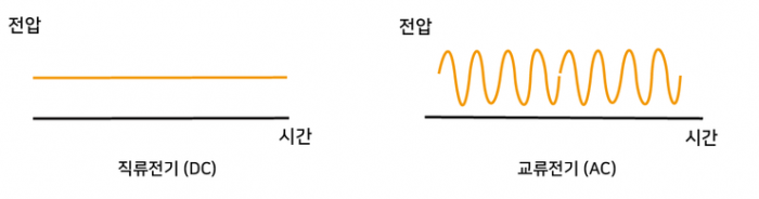 이처럼 발전기에서 생산되는 전압과 전류는 크기와 방향이 시간에 따라 주기적으로 변한다. 이러한 형태를 '교류'라고 한다. 이와 반대로 전류와 전압의 크기와 방향이 항상 고정되어 있는 형태를 '직류'라고 한다.