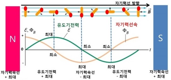즉 자석과 코일 간에 상대적인 움직임이 있어야만 코일을 통과하는 자속에 변화가 생긴다. 이처럼 변화하는 자속에 의해 만들어지는 전압을 '유도 기전력[V]'이라고 한다. 그리고 유도 기전력에 의해서 흐르는 전류를 '유도 전류[A]'라고 한다.