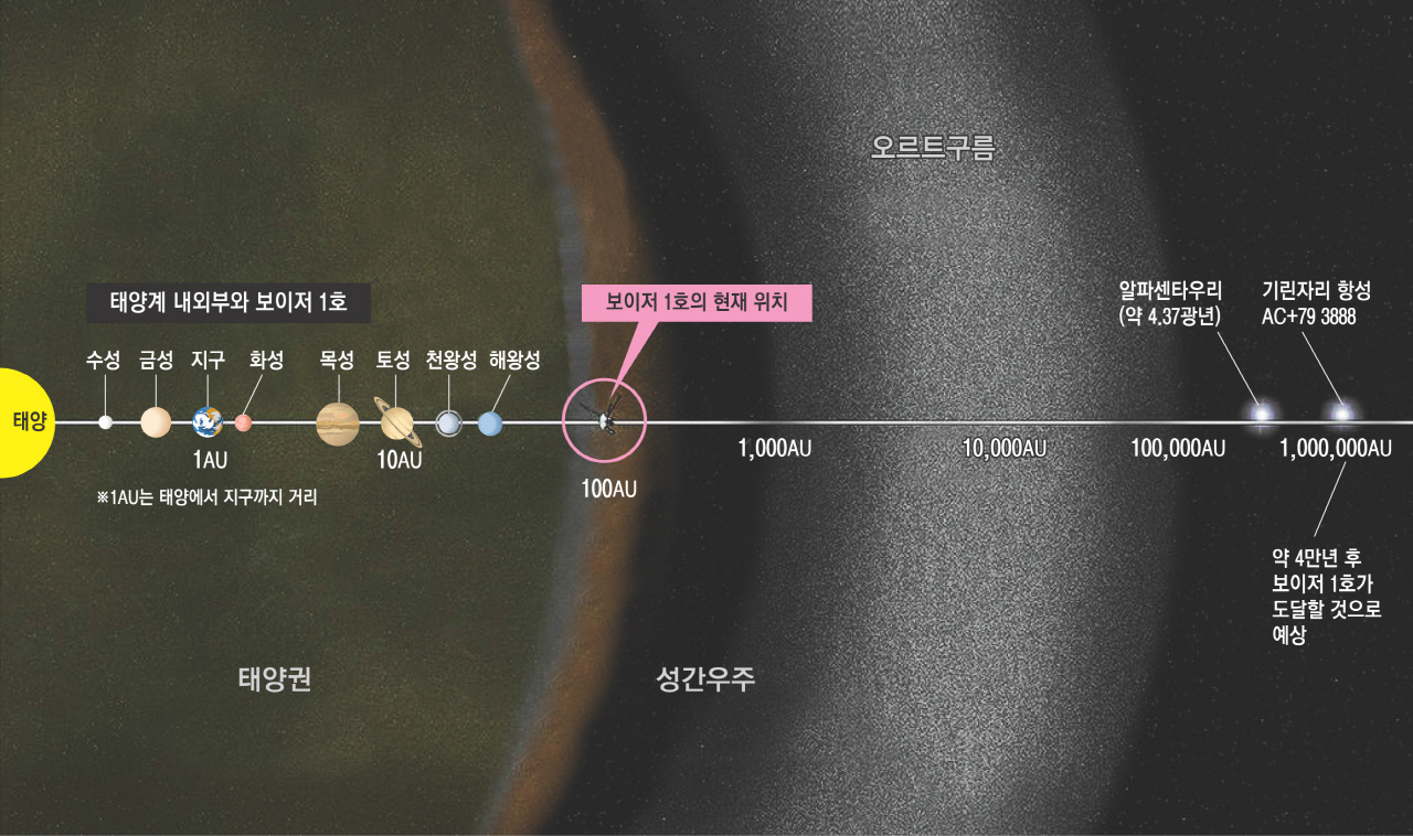 현시점에서 지구로부터 가장 멀리 날아간 우주 탐사선인 보이저 1호가 오르트 구름 안쪽 경계에 도달하는 것은 2310년쯤이며, 오르트 구름을 완전히 벗어나려면 대략 3만 년의 시간이 걸린다. 한계에 한계를 넘어서는 인류의 여정은 끝을 모르는 듯하다. 마치 나의 여정과 같다.