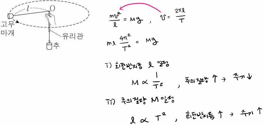 ⓑ회전 반지름이 일정할 때 추의 질량과 주기의 관계