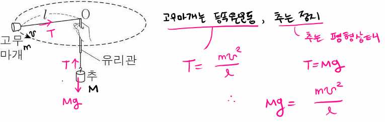 등속 원운동에서 구심력과 회전수, 회전 반지름 등의 관계를 설명할 수 있다.
