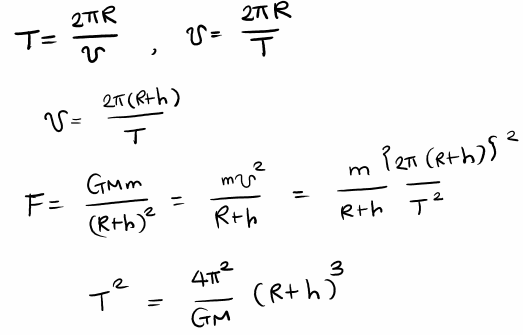 질량이 m인 인공위성이 그림과 같이 지표면으로부터 높이 h에서 일정한 속력으로 질량이 M인 지구 주위를 회전하려면 얼마의 속력을 유지해야 할까요?