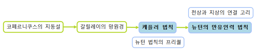 이에 반해 케플러는 그의 스승이 평생 동안 관측해 놓은 자료를 토대로 귀납하여 행성의 운동에 관한 세 법칙을 정리하였습니다. 케플러의 세 법칙은 뉴턴 역학 체계를 지지하는 중요한 경험적 근거였기때문에 이후 뉴턴으로 하여금 만유인력의 법칙을 발견하는 데 큰 도움이 되었어요.