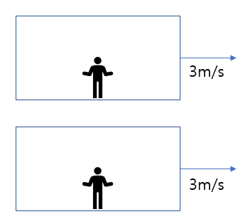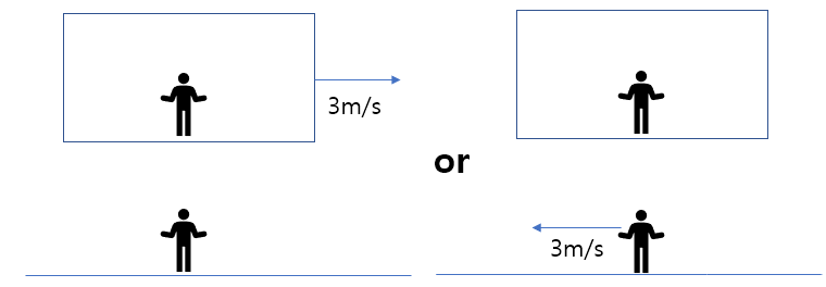 혹은 동쪽으로 3m/s로 등속 운동하는 자동차의 관찰자는 자동차가 동쪽으로 3m/s로 움직이는 건지, 자동차를 관찰하는 좌표계가 서쪽으로 3m/s로 등속 운동하는 건지 알 수 없어요.