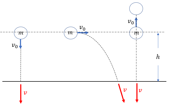 속력을 비롯한 스칼라 정보를 파악하는데 일-에너지 정리가 요긴하게 쓰입니다. 위의 예시처럼 지면에 도달했을 때의 물체의 속력이 세 경우에 모두 동일하다는 사실은 일-에너지 정리를 쓰면 쉽게 알 수 있어요. 그러나 운동 방향을 비롯한 여러 벡터적 정보들은 일-에너지 정리로 파악하기 힘듭니다. 일-에너지 정리는 스칼라로만 구성돼 있기 때문이죠.