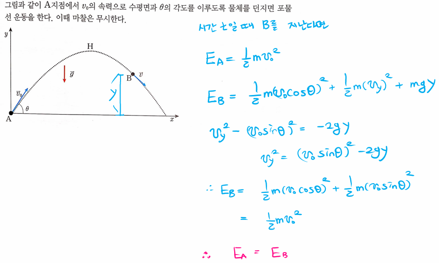 - 포물선 운동에서 역학적 에너지가 보존됨을 설명할 수 있다.