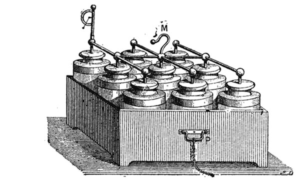 그에 착안하여 미국의 벤자민 프랭클린은 볼타가 만든 최초의 전지인 라이덴병 여러 개를 연결시켜 놓은 것을 배터리라고 비유했습니다. 이후 배터리가 전지라는 일반적인 용어로 굳어지고 나서는 여러 단위를 겹쳐놓지 않고 한 개만 있어도 그냥 배터리라고 부르게 된 거고요.