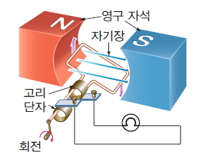 발전기에서는 전자기 유도 현상을 이용하여 기전력을 만들어냅니다.