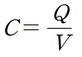 위 식에 따라 두 금속판에 1V의 전위차가 유지될 때, 1C의 전하량을 저장할 수 있는 축전기의 전기 용량을 1F으로 정의합니다.