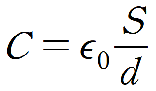 두 금속판 사이가 아무것도 없는 진공 상태라면, 진공에서의 유전율 ℇ₀ 이란 상수를 사용하여 위의 비례식을 다음과 같은 등식으로 만들 수 있습니다.