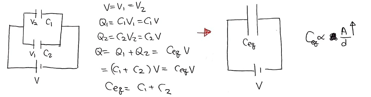 결론은 어떤 상황이 됐든, 축전기에 유전체를 집어넣으면 축전기의 전기 용량은 증가합니다. 유전체를 집어넣은 축전기의 전기 용량의 크기는 다음과 같이 정의됩니다.