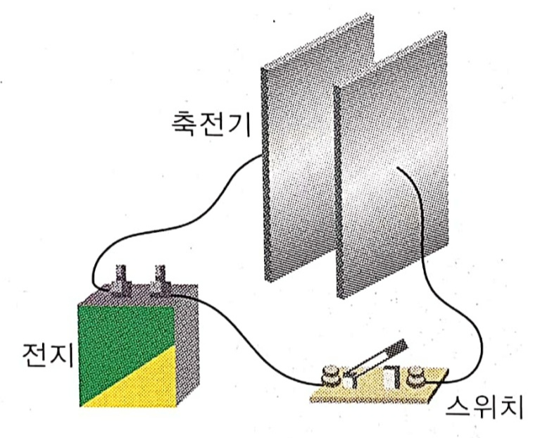 용수철과 물체 사이에 탄성력에 의한 퍼텐셜 에너지가 저장돼 있듯이 전하 사이의 전기장에 전기 퍼텐셜 에너지가 저장돼 있습니다. 이를 부품화한 게 축전기예요.