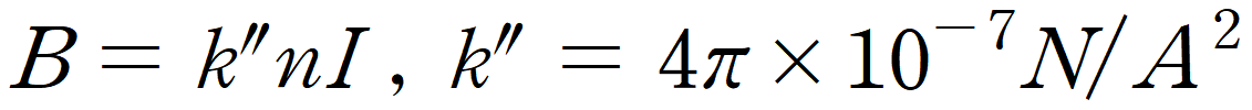 따라서 솔레노이드 내부의 자기장 세기 B는 솔레노이드에 흐르는 전류의 세기 I에 비례해요. 더불어 솔레노이드는 각각의 원형 도선이 합쳐진 결과이기 때문에 원형 도선이 많이 겹쳐질수록 그만큼 자기장의 세기가 커지겠죠? 따라서 솔레노이드 내부의 자기장 세기 B는 단위 길이당 도선을 감은 횟수 n에 비례합니다. 단위 길이당 도선을 감은 횟수 n은 솔레노이드를 전체적으로 감은 횟수 N을 솔레노이드 전체 길이 L로 나누어 구합니다.