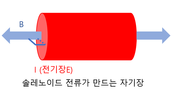 솔레노이드는 원형 도선을 촘촘하고 균일하게 포개어놓은 형태입니다. 따라서 솔레노이드 전류에 의한 자기장은 각각의 원형 전류에 의한 자기장이 합쳐진 결과로 봐도 상관없어요.