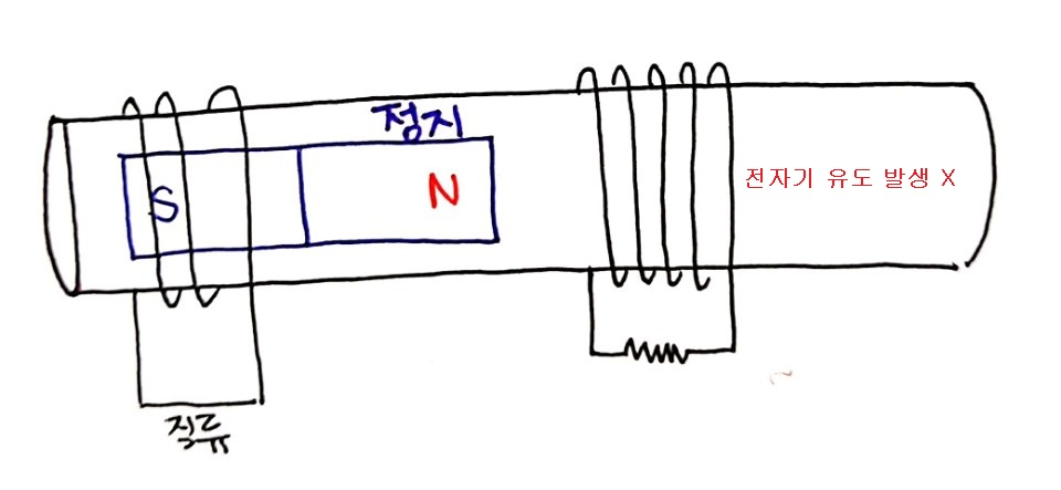 정리하면 코일에 N극이 가까이 오는 동안 코일 면적 A를 통과하는 자기장의 세기가 증가합니다. 따라서 자속 Φ이 커지게 되죠. 이러한 시간에 따른 자속 변화(=△Φ/△t)가 기전력의 역할을 합니다. 반대로 자석이 가만히 있고 코일이 움직이는 경우 또한 시간에 따른 자속 변화가 생긴다는 측면에서 같습니다. 그러나 코일과 자석이 모두 정지해 있거나, 코일과 자석 모두 같은 방향, 같은 빠르기로 움직이는 경우는 다릅니다. 이는 코일을 통과하는 자기장의 변화가 생길 수 없는 경우이기 때문이죠.