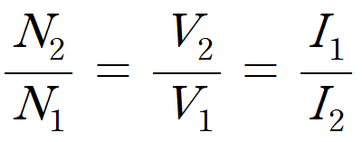 따라서 변압기의 1차 코일과 2차 코일에서 각각의 물리량은 다음과 같은 관계를 만족합니다.