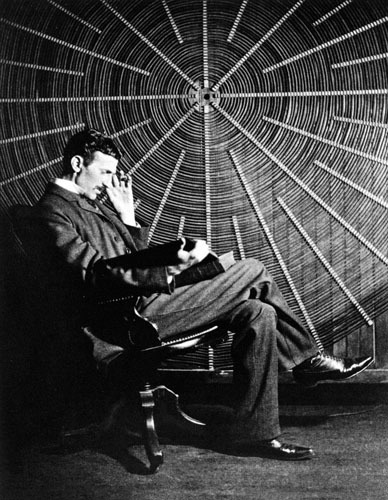 이런 에디슨의 꼼수에 가만히 당하고만 있을 테슬라가 아니었어요. 그는 몇 백만 볼트의 교류 발전기 옆에 앉아 시크하게 책을 읽고 있는 장면을 연출함으로써 교류 발전의 위험성에 대한 주장을 일축합니다.