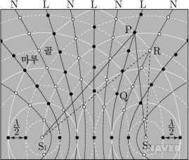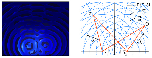 | 보강 간섭하는 지점 | 상쇄 간섭하는 지점 | |