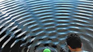 두 개의 공을 동일한 박자와 세기로 수면을 쳐줄 때 생기는 두 개의 수면파는 위상과 진폭이 서로 같습니다. 따라서 수면파들은 보강 간섭만 일으켜야 하는데요. 실제로는 두 개의 수면파가 보강 간섭하여 수면이 계속 진동하는 지점이 있고, 상쇄 간섭하여 수면이 잔잔한 지점 또한 발생합니다. 왜 그럴까요?