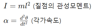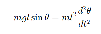 단진자에 작용하는 중력에 의한 돌림힘은 매달린 점을 기준으로 다음과 같이 정의됩니다.