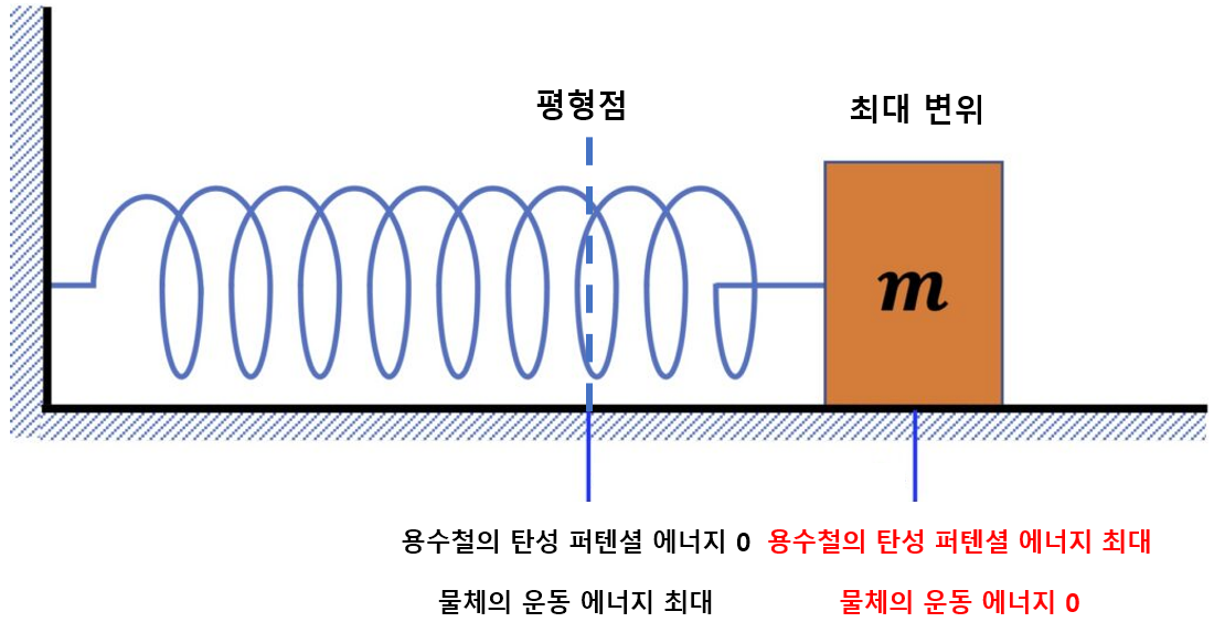 뉴턴 운동 법칙에서 비롯된 용수철에 매달려 있는 물체 m에 대한 운동 방정식은 다음과 같이 표현됩니다.