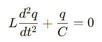 키르히호프 법칙에서 비롯된 축전기와 코일 각각의 양단 전위차 관계에 대한 회로 방정식은 다음과 같이 표현됩니다.