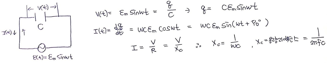 2) 교류 회로에서의 축전기