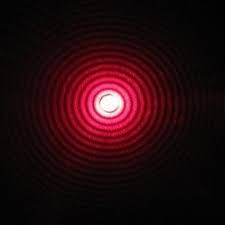 원형 구멍을 통과하는 빛은 왼쪽 그림과 같이 밝고 어두운 원형 회절 무늬를 남깁니다. 원형 구멍에 의한 중앙의 밝은 회절 무늬 크기는 구멍의 직경 d에 반비례하고, 빛의 파장 λ에 비례합니다.