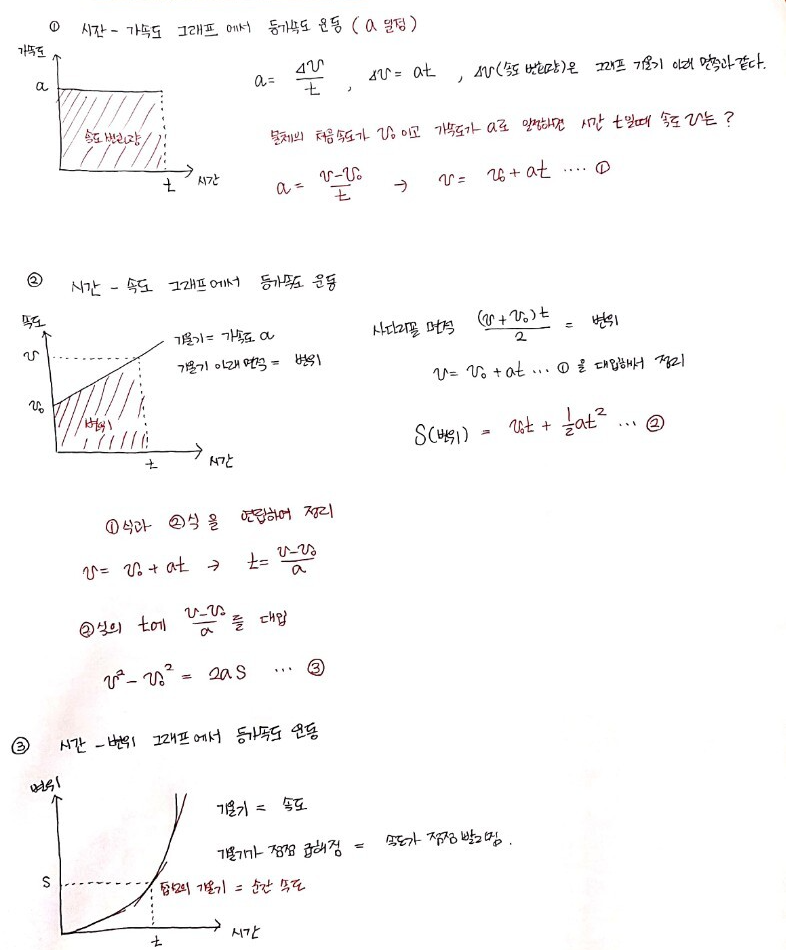 가속도 정의와 그래프 분석으로 유도한 세 가지 식