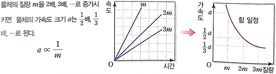 물체는 알짜힘의 방향으로 가속된다. 이때 물체의 가속도 크기는 물체에 작용하는 알짜힘의 크기에 비례하고 물체의 질량에 반비례한다.