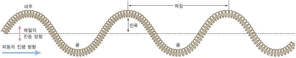 ⓒ진폭: 매질이 진동하는 최대 변위, 진동의 중심에서 마루 또는 골까지의 높이